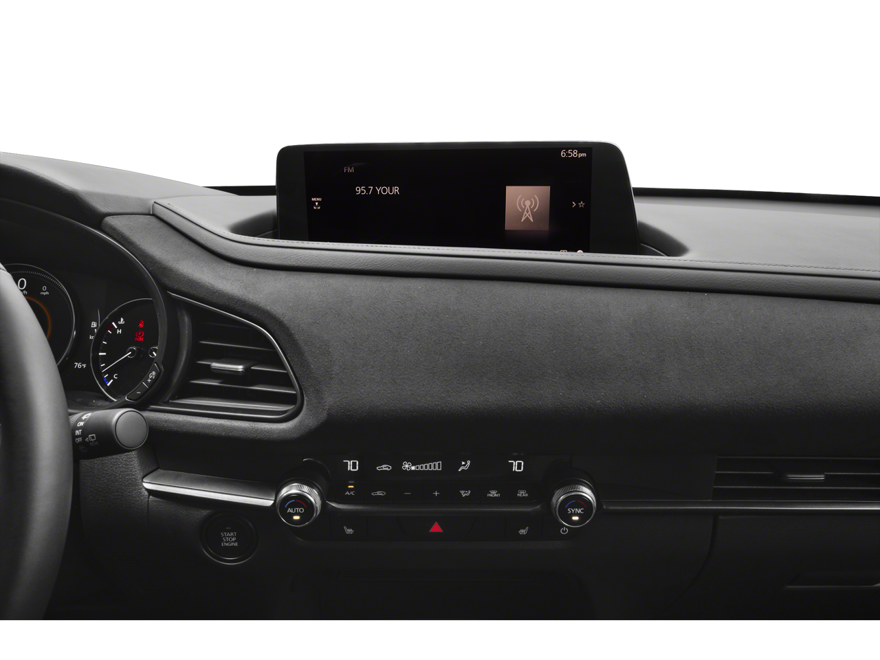 - Radio: AM/FM/HD Audio System -inc: 8-speakers w/Mazda Harmonic Acoustics, 10.25" full-color center display w/touchscreen functionality in AA/CP, Alexa Built-In, Apple CarPlay/Android Auto integration (wireless), Bluetooth® hands-free phone and audio capability, USB type-C audio inputs (2 ports) and steering wheel-mounted audio controls
