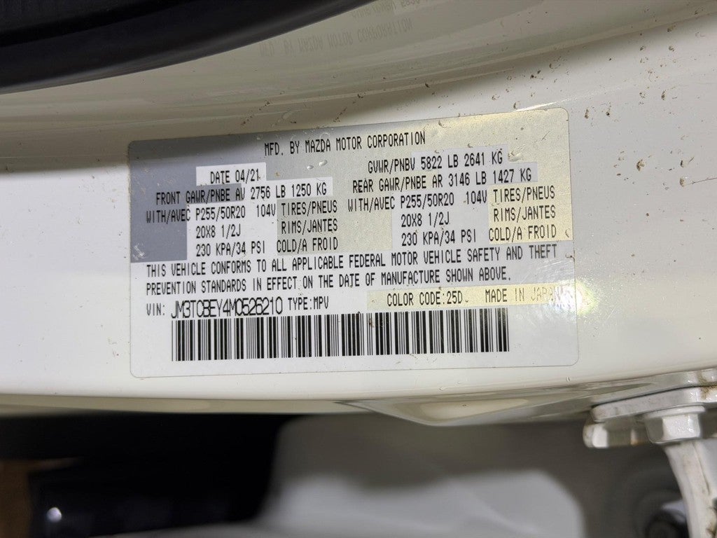 Recent Arrival! 2021 Mazda CX-9 Signature 2.5L 4-Cylinder 6-Speed Automatic AWD 4D Sport Utility Snowflake White Pearl Mica AWD, 12 Speakers, 3rd row seats: bench, 4-Wheel Disc Brakes, ABS brakes, Aha Internet Radio, Air Conditioning, Alloy wheels, AM/FM radio: SiriusXM, AppLink/Apple CarPlay and Android Auto, Auto High-beam Headlights, Auto-dimming Rear-View mirror, Automatic temperature control, Axle Ratio: 4.411, Brake assist, Bumpers: body-color, Cargo Net & Side Storage Nets Package, Carpeted Cargo Mat, Compass, Delay-off headlights, Driver door bin, Driver vanity mirror, Dual front impact airbags, Dual front side impact airbags, E911 Automatic Emergency Notification, Electronic Stability Control, Emergency communication system: MAZDA CONNECT, Four wheel independent suspension, Front & Rear Splash Guards, Front anti-roll bar, Front Bucket Seats, Front Center Armrest, Front dual zone A/C, Front fog lights, Front reading lights, Fully automatic headlights, Garage door transmitter: HomeLink, Genuine wood door panel insert, Heads-Up Display, Heated door mirrors, Heated front seats, Heated rear seats, Heated steering wheel, Heated/Ventilated Front Bucket Seats, Illuminated Doorsill Trim Plates, Illuminated entry, Infotainment System Voice Command, Interior Lighting Kit, Leather Shift Knob, Leather steering wheel, Low tire pressure warning, Mazda Connected Services, Mazda Navigation System, Memory seat, Nappa Leather Seat Trim, Navigation System, Occupant sensing airbag, Outside temperature display, Overhead airbag, Overhead console, Pandora Internet Radio, Panic alarm, Passenger door bin, Passenger vanity mirror, Power door mirrors, Power driver seat, Power Liftgate, Power moonroof, Power passenger seat, Power steering, Power windows, Radio Broadcast Data System Program Information, Radio data system, Radio: AM/FM Sound System w/Bose Audio, Rain sensing wipers, Rear air conditioning, Rear anti-roll bar, Rear reading lights, Rear seat center armrest, Rear window defroster, Rear window wiper, Remote keyless entry, Retractable Cargo Cover, Roof rack: rails only, SiriusXM Satellite Radio, SMS Text Msg Audio Delivery & Reply, Snowflake White Pearl Mica Paint, Speed control, Speed-sensing steering, Split folding rear seat, Spoiler, Steering wheel mounted audio controls, Stitcher Internet Radio, Tachometer, Telescoping steering wheel, Tilt steering wheel, Traction control, Trip computer, Turn signal indicator mirrors, Variably intermittent wipers, Ventilated front seats, Wheels: 20" x 8.5J Aluminum Alloy, AWD.