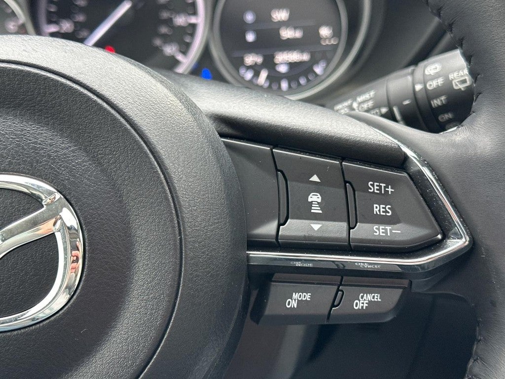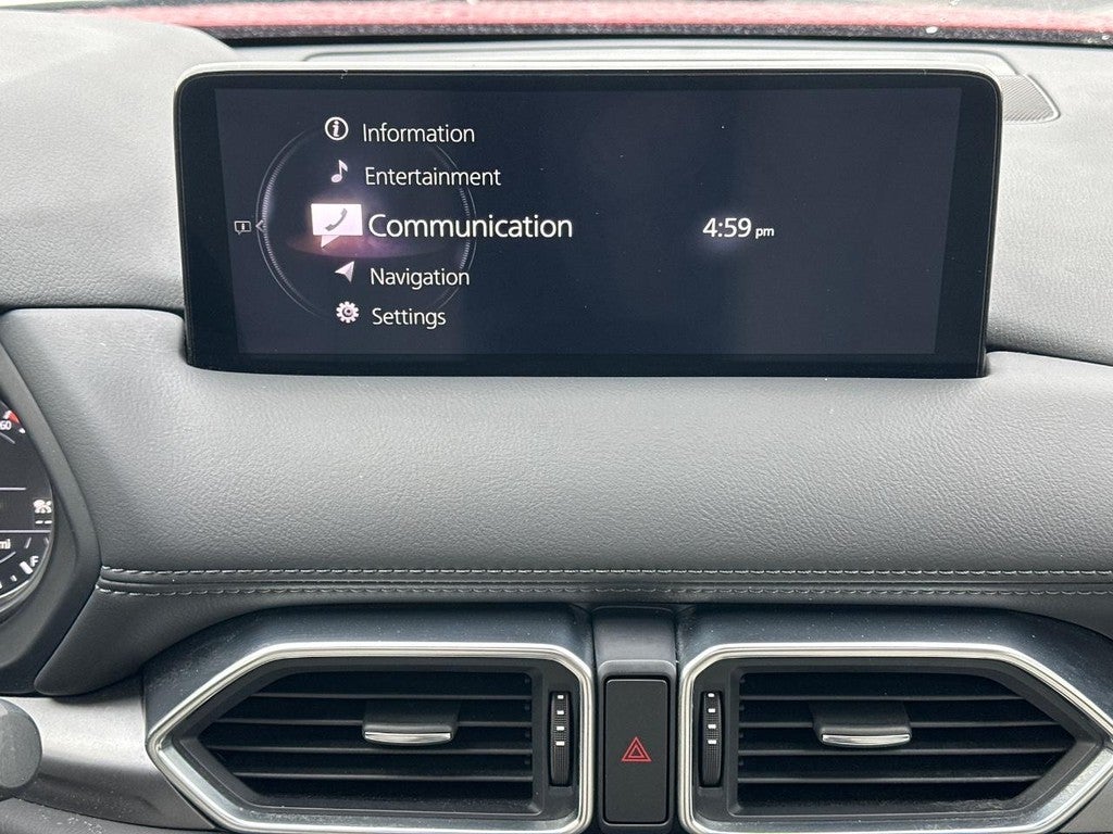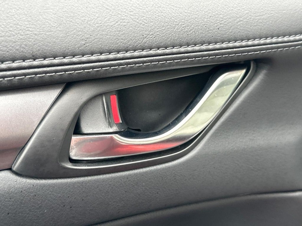 This Mazda CX-5 is well equipped with 4-Wheel Disc Brakes, 4.624 Axle Ratio, ABS brakes, Air Conditioning, Alloy wheels, AM/FM radio, AppLink/Apple CarPlay and Android Auto, Auto High-beam Headlights, Auto-dimming Rear-View mirror, Automatic temperature control, Brake assist, Bumpers: body-color, Cargo Mat, Delay-off headlights, Driver door bin, Driver vanity mirror, Dual front impact airbags, Dual front side impact airbags, E911 Automatic Emergency Notification, Electronic Stability Control, Emergency communication system: MAZDA CONNECT, Exterior Parking Camera Rear, Four wheel independent suspension, Front anti-roll bar, Front Bucket Seats, Front Center Armrest w/Storage, Front dual zone A/C, Front reading lights, Fully automatic headlights, Garage door transmitter: HomeLink, Heated Front Bucket Seats, Heated front seats, Illuminated entry, Infotainment System Voice Command, Leather Seat Trim, Leather Shift Knob, Low tire pressure warning, Memory seat, Multifunction Commander Control, Occupant sensing airbag, Outside temperature display, Overhead airbag, Overhead console, Pandora, Panic alarm, Passenger door bin, Passenger vanity mirror, Power door mirrors, Power driver seat, Power Liftgate, Power moonroof, Power passenger seat, Power steering, Power windows, Radio Broadcast Data System Program Information, Radio data system, Radio: AM/FM/HD Audio System, Rain sensing wipers, Rear anti-roll bar, Rear Bumper Guard, Rear reading lights, Rear seat center armrest, Rear window defroster, Rear window wiper, Remote keyless entry, SMS Text Msg Audio Delivery & Reply, Speed control, Speed-sensing steering, Split folding rear seat, Spoiler, Steering wheel mounted audio controls, Tachometer, Telescoping steering wheel, Tilt steering wheel, Traction control, Trip computer, Turn signal indicator mirrors, and Variably intermittent wipers.